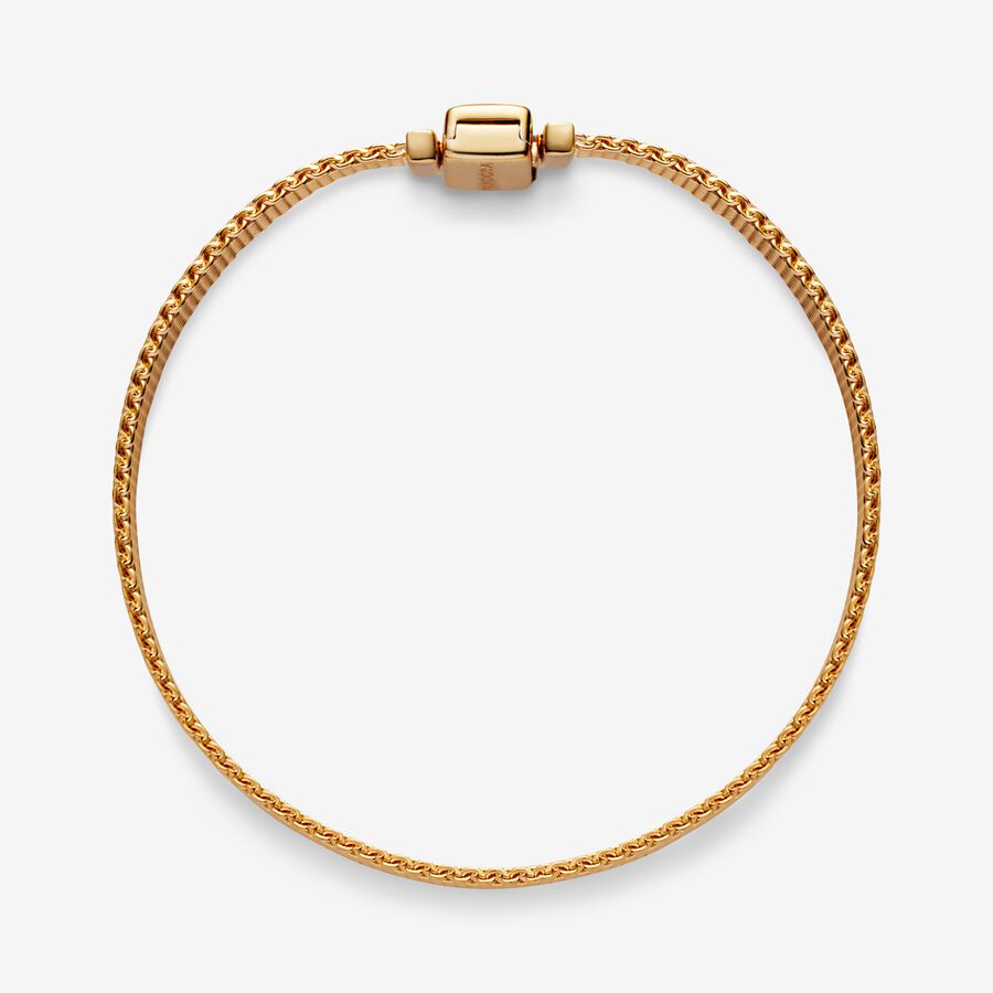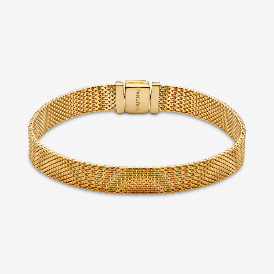 Reflecting modern feminity, the clean, fluid lines of the new Pandora Reflexions bracelet let you express how it feels to be you. This versatile 14k gold-plated bracelet is perfect for wearing alone or with the corresponding clip charms.
