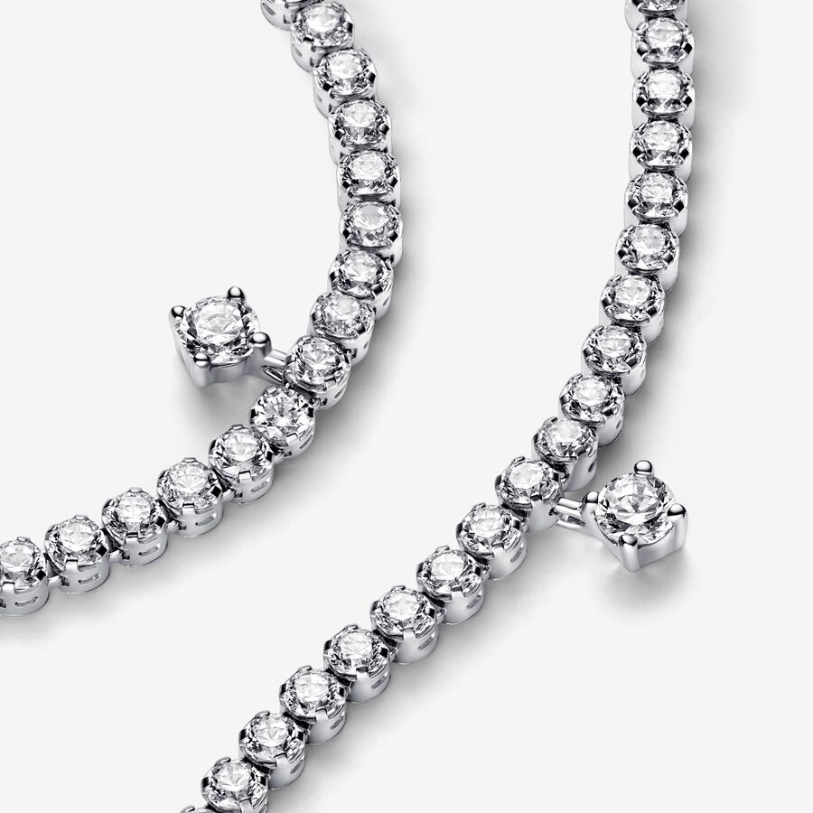 Make your holiday season sparkle. This sterling silver Sparkling Drops Tennis Bracelet is made up of a row of sparkling round brilliant cut cubic zirconia, decorated with dangling stones along the chain to make a statement fit for any occasion. Wear it on its own or stack bracelets of different colors and metal finishes for a modern look.