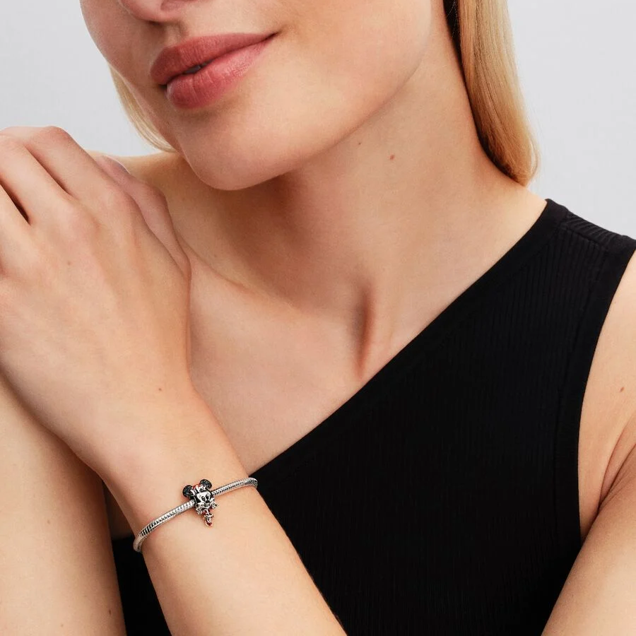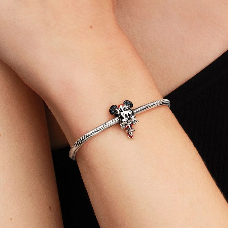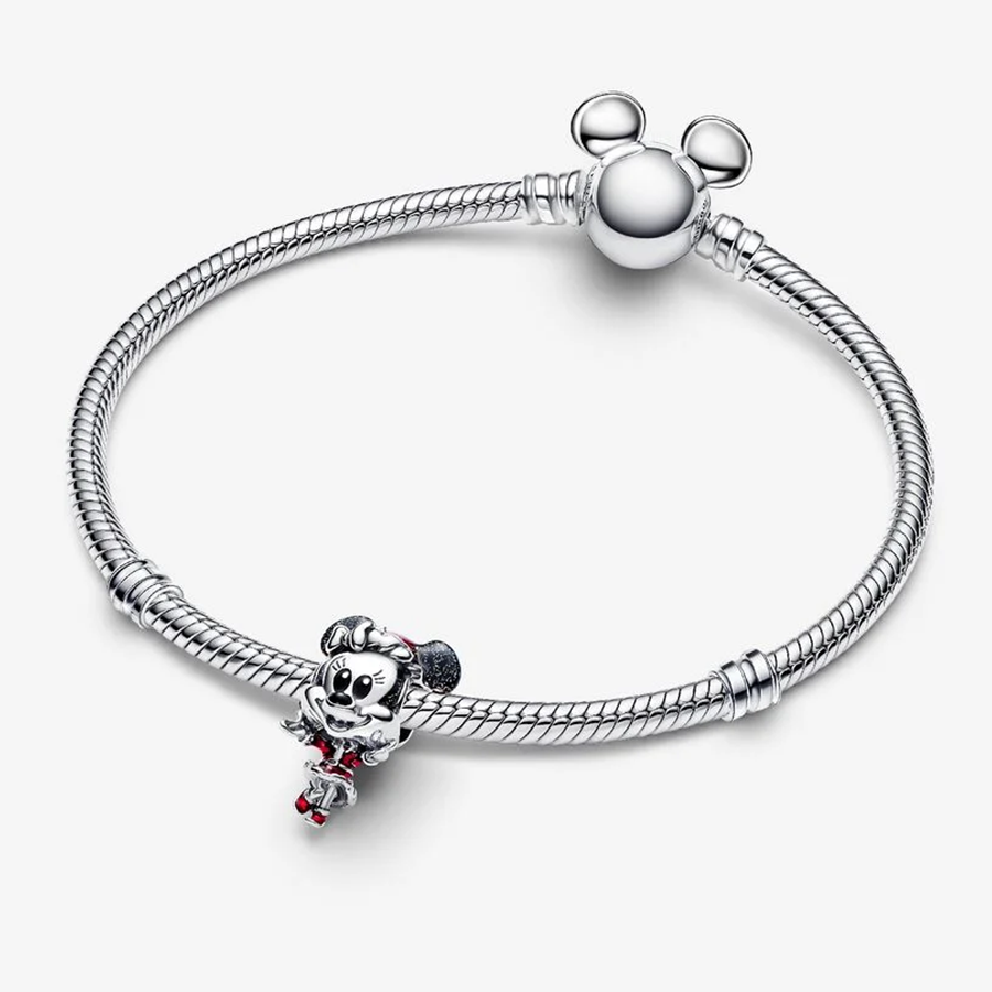Disney's Minnie Mouse sparkles with festive charm. Crafted in sterling silver and featuring vibrant enamel detailing, her Santa hat and holiday outfit radiate warmth, joy and the magic of the season.