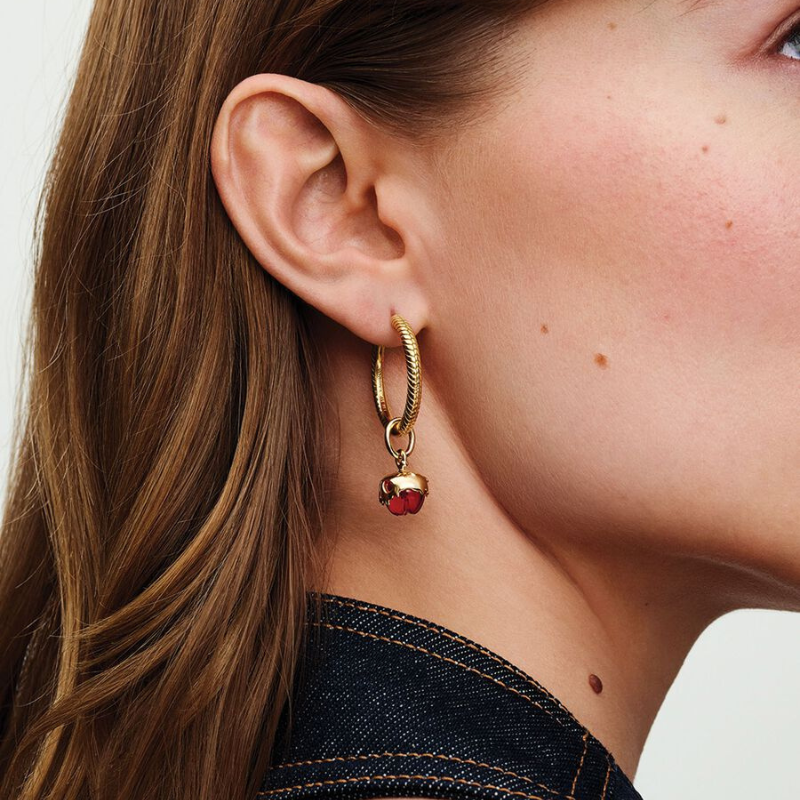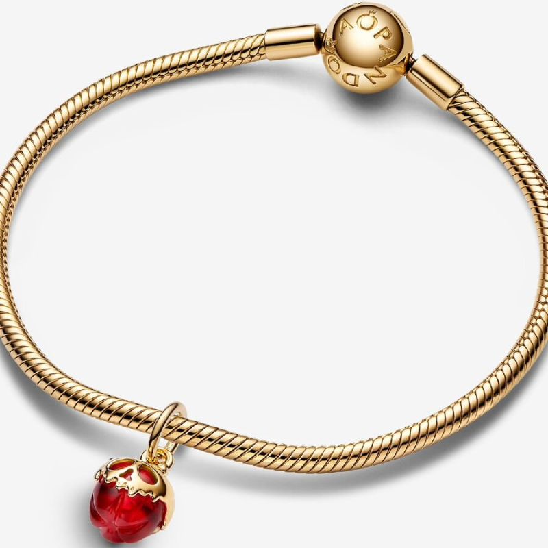 Pick your poison with our 14k gold-plated red apple charm inspired by the iconic Evil Queen from Disney's Snow White. The tempting poison apple is crafted from red Murano glass and covered by a golden skull shape, creating a striking contrast.