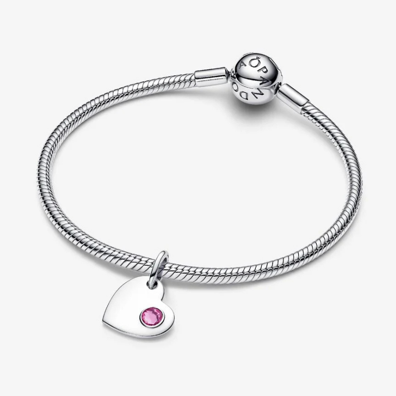 Wear your heart on your sleeve, literally. This sterling silver dangle charm pairs a pink man-made crystal with an engravable back — crafted to carry your most meaningful words.