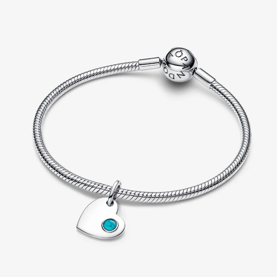 Wear your heart on your sleeve, literally. This sterling silver dangle charm pairs a turquoise-inspired stone with an engravable back — crafted to carry your most meaningful words.