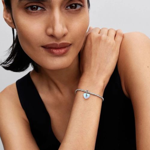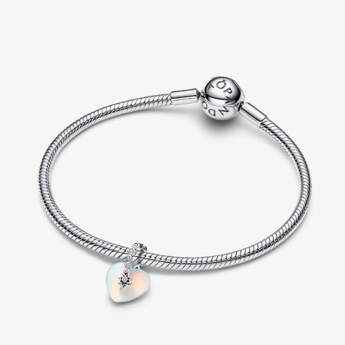 A heart of moonstone iridescent glass meets a shooting star. Featuring sterling silver and clear cubic zirconia, this charm symbolizes dreams, hope and endless possibilities. Shine solo or layer with meaning.