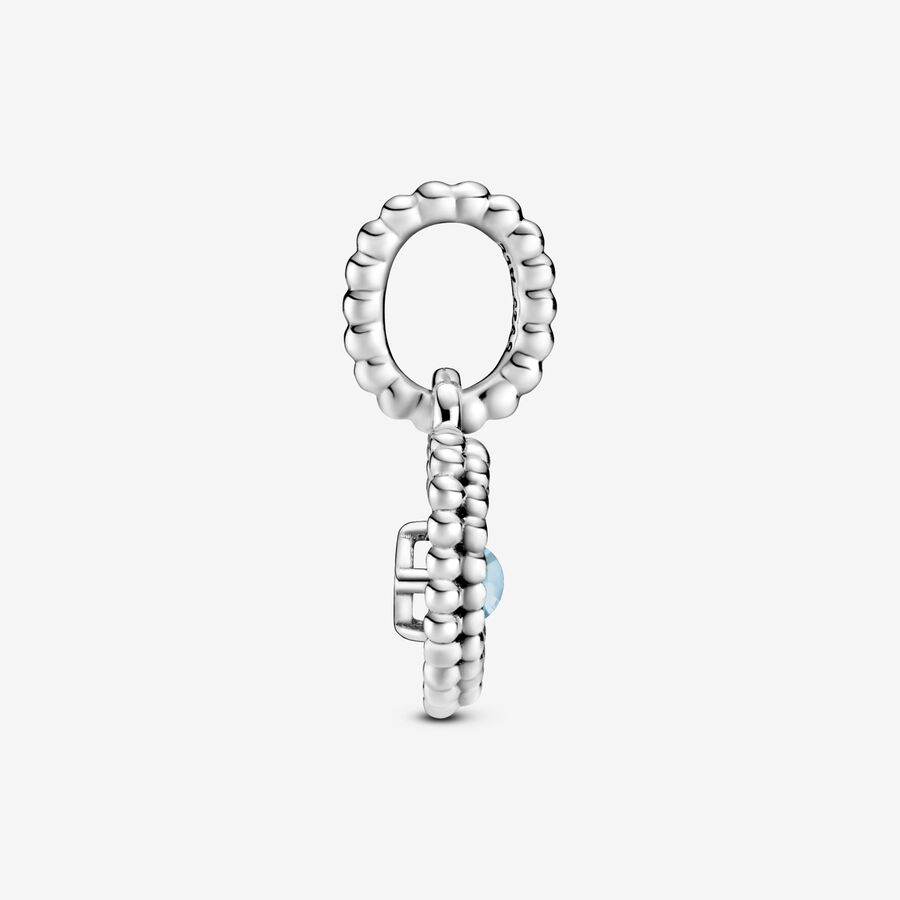 Blue like the sky or your favorite pair of jeans? All that you are and all you love, captured in color. Inspired by the beaded designs of Purely Pandora, this heart-shaped dangle is hand-finished in sterling silver and features a claw-set buff top-cut sky blue man-made crystal in the center. Wear it on Pandora bracelets or necklaces to define and redefine your style by choosing colors that express who you are.