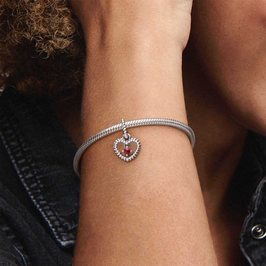 A favorite shade of lipstick or a perfectly ripe raspberry? All that you are and all you love, captured in color. Inspired by the beaded designs of Purely Pandora, this heart-shaped dangle is hand-finished in sterling silver and features a claw-set buff top-cut blazing red man-made crystal in the center. Wear it on Pandora bracelets or necklaces to define and redefine your style by choosing colors that express who you are.
