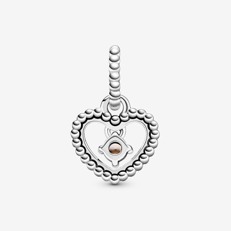 A delicate peony or a favorite silk scarf? All that you are and all you love, captured in color. Inspired by the beaded designs of Purely Pandora, this heart-shaped dangle is hand-finished in sterling silver and features a claw-set buff top-cut light misty rose man-made crystal in the center. Wear it on Pandora bracelets or necklaces to define and redefine your style by choosing colors that express who you are.