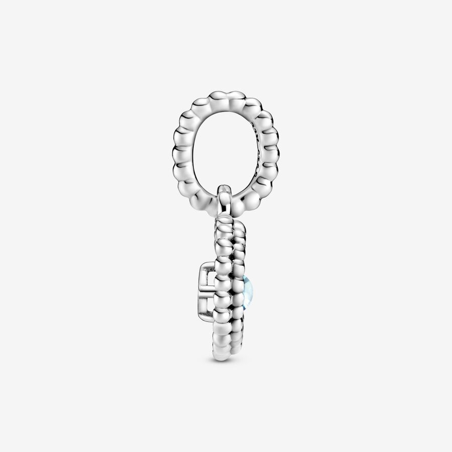 March Aqua Blue Beaded Heart Dangle Charm