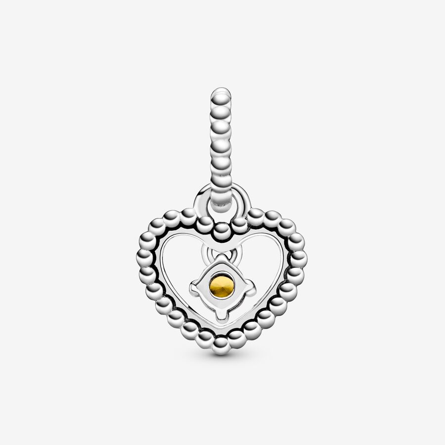 Like summer honey or a bright sunny day? All that you are and all you love, captured in color. Inspired by the beaded designs of Purely Pandora, this heart-shaped dangle is hand-finished in sterling silver and features a claw-set buff top-cut honey colored man-made crystal in the center. Wear it on Pandora bracelets or necklaces to define and redefine your style by choosing colors that express who you are.