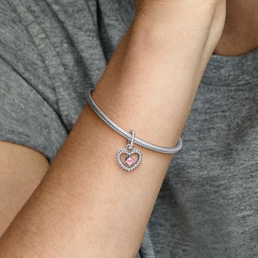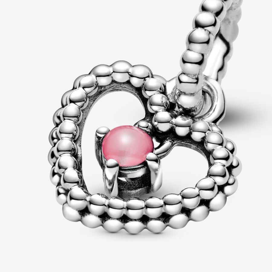 October Petal Pink Beaded Heart Dangle Charm