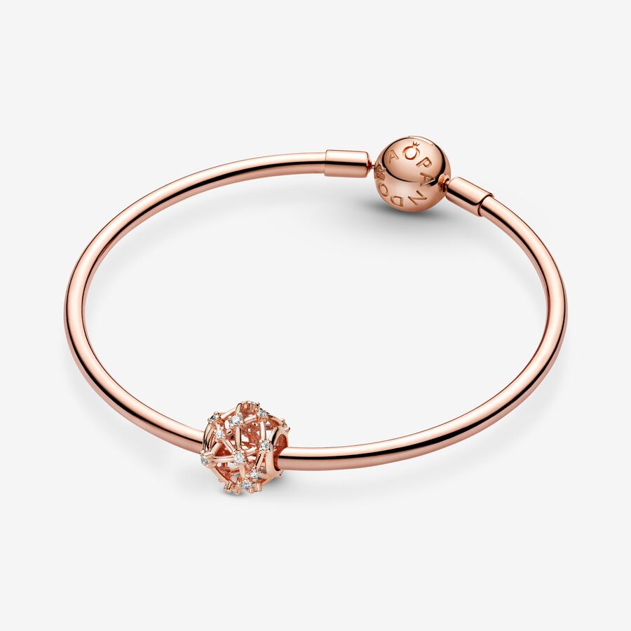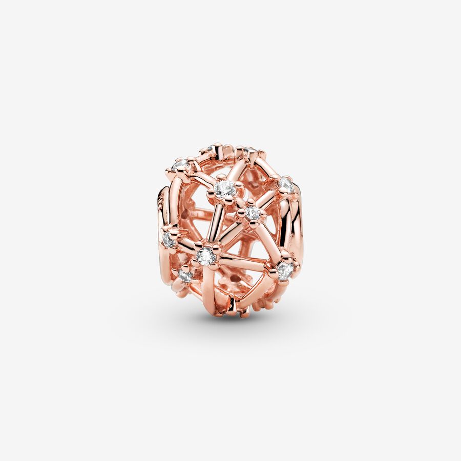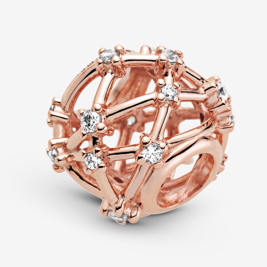 Look to the night sky for answers with the Openwork Star Constellations Charm. Hand-finished in 14k rose gold plating, this piece is inspired by a galaxy-themed design from Pandora’s archive. Clear stones are set along the charm’s rounded openwork lines to mimic the formation of the stars in space. Wear this piece alongside other zodiac-inspired charms on your Pandora Moments bracelet to show that you love the universe.