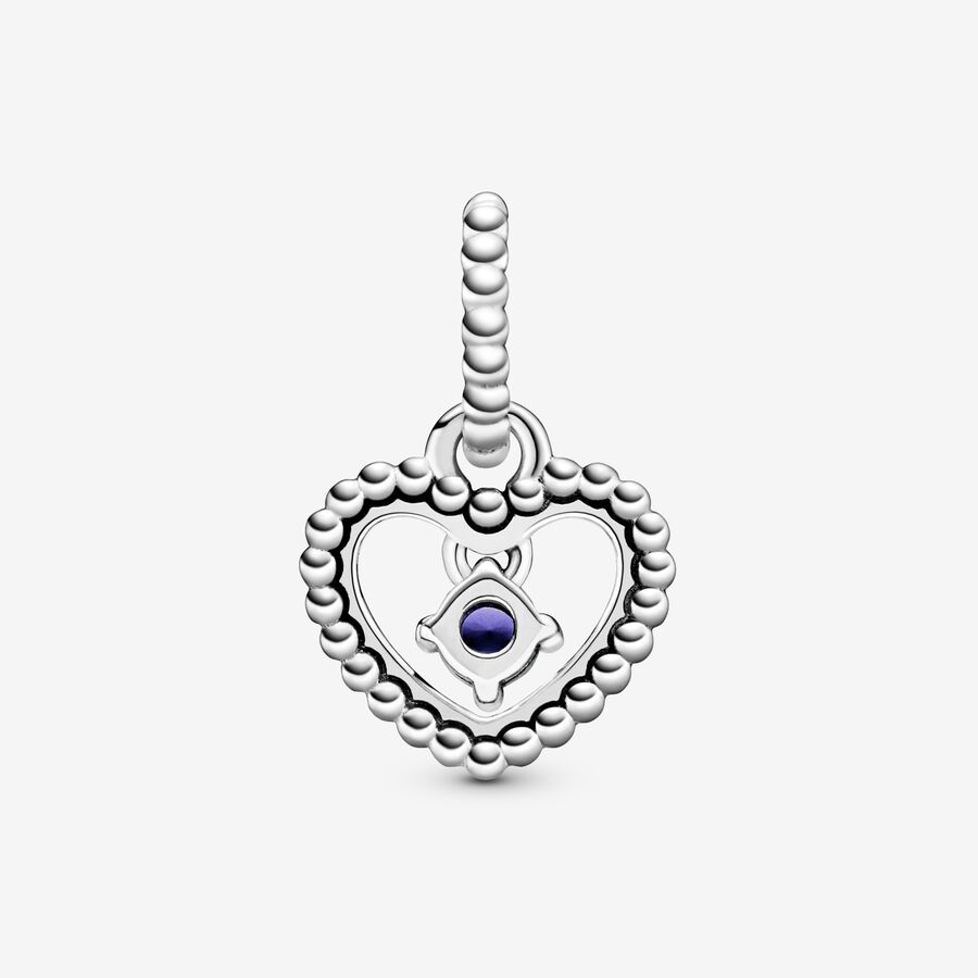 The clear night sky or a feeling of serenity? All that you are and all you love, captured in color. Inspired by the beaded designs of Purely Pandora, this heart-shaped dangle is hand-finished in sterling silver and features a claw-set buff top-cut sea blue man-made crystal in the center. Wear it on Pandora bracelets or necklaces to define and redefine your style by choosing colors that express who you are.