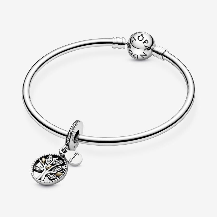 Celebrate all the generations of your family with this Pandora family tree charm. Hand-finished with 14k gold detailing and shimmering stone-embellished leaves, this sterling silver charm is complemented with a miniature pendant engraved with “family.” A charming gift idea that will be cherished by all your loved ones.