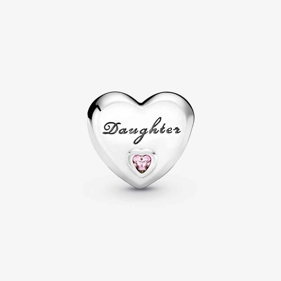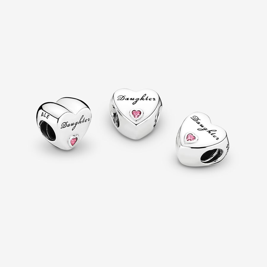 Pandora Moments charms are made for you to express the things you love – something, somewhere or someone. Made to celebrate the bond between parents and daughters, our sterling silver family charm is shaped as a heart. Polished to a high shine, the simple yet meaningful style is trimmed with heart-shaped pink stones and the engraving “Daughter.” We think it makes a meaningful gift to show the story you share.