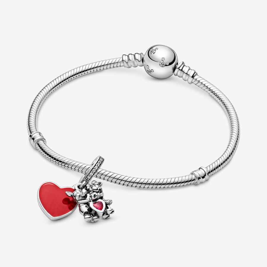 Put the love in your style with sweethearts and , immortalised on this sweet dangle charm. The sterling silver design is detailed with hand-applied red enamel hearts and glittering cubic zirconia touches. Wear it as a reminder of a loving relationship. It also makes a thoughful gift to represent a story of love.