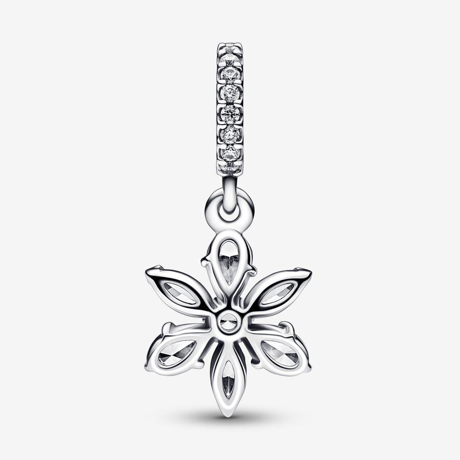 Bring the beauty of nature to your jewelry with the Sparkling Herbarium Cluster Dangle Charm. This sterling silver dangle charm features a cluster of alternating pear and marquise-shaped stones around a round center stone, forming a geometric shape inspired by petal and leaf elements. An elegant reinterpretation of the shapes we find in nature, perfect to bring a delicate, floating feel to your bracelet, necklace or earrings.