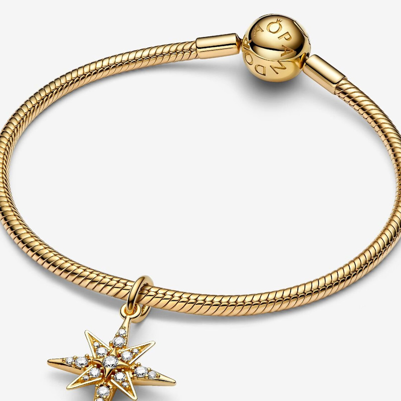 Be guided by the light and carry your own celestial compass with our Sparkling North Star Dangle Charm. Crafted in 14k gold plating, this charm features layers of sparkling stones and radiant metal to create dimension and catch more light. Add a touch of celestial symbolism to your stack or gift it to the star of your life.