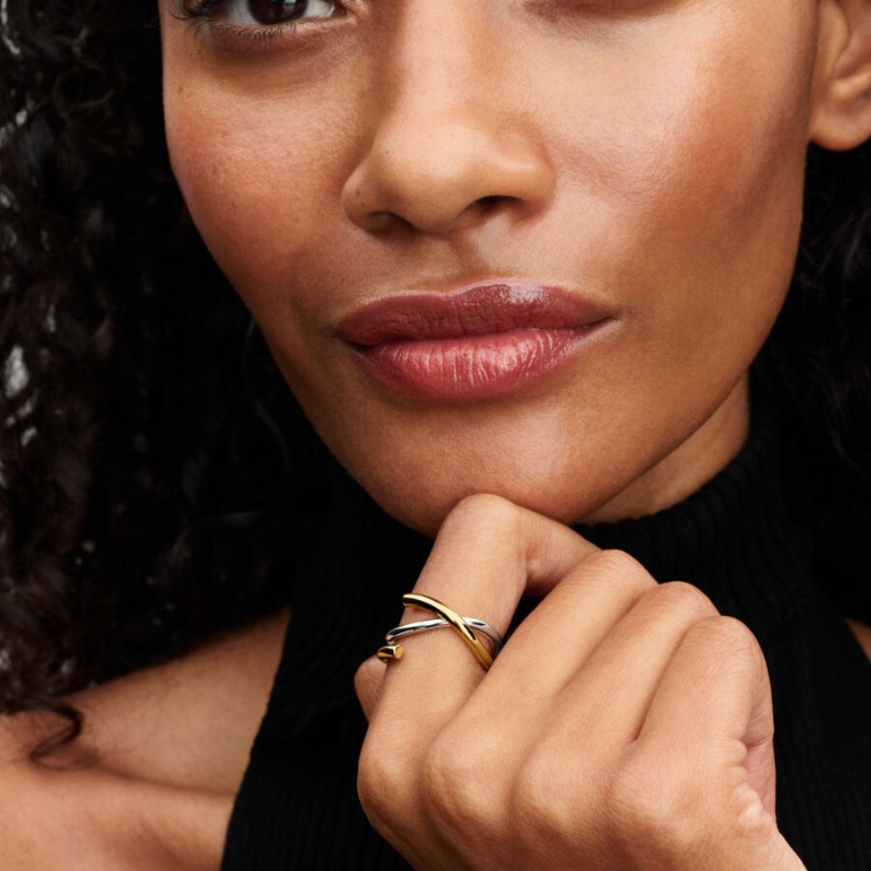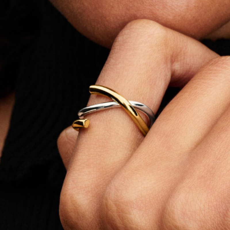 Discover the perfect blend of simplicity and boldness with this organically shaped ring, where one band is closed and the other is open, creating a striking contrast that celebrates individuality.