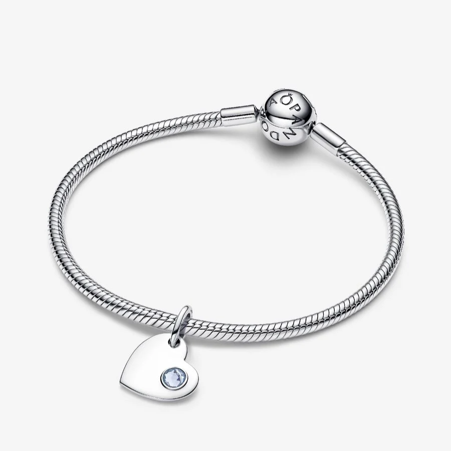 Wear your heart on your sleeve, literally. This sterling silver dangle charm pairs an aqua blue man-made crystal with an engravable back — crafted to carry your most meaningful words.
