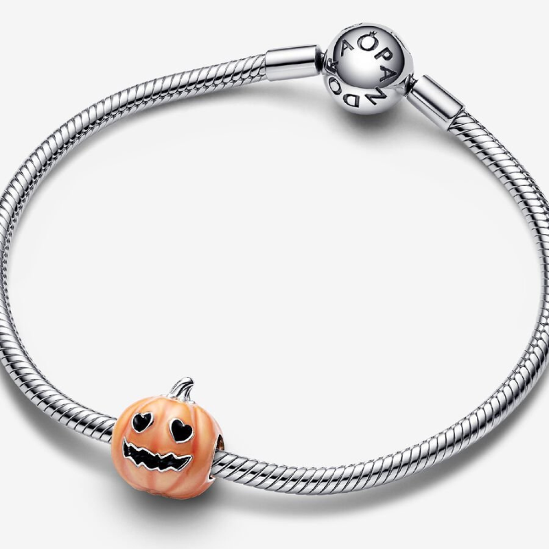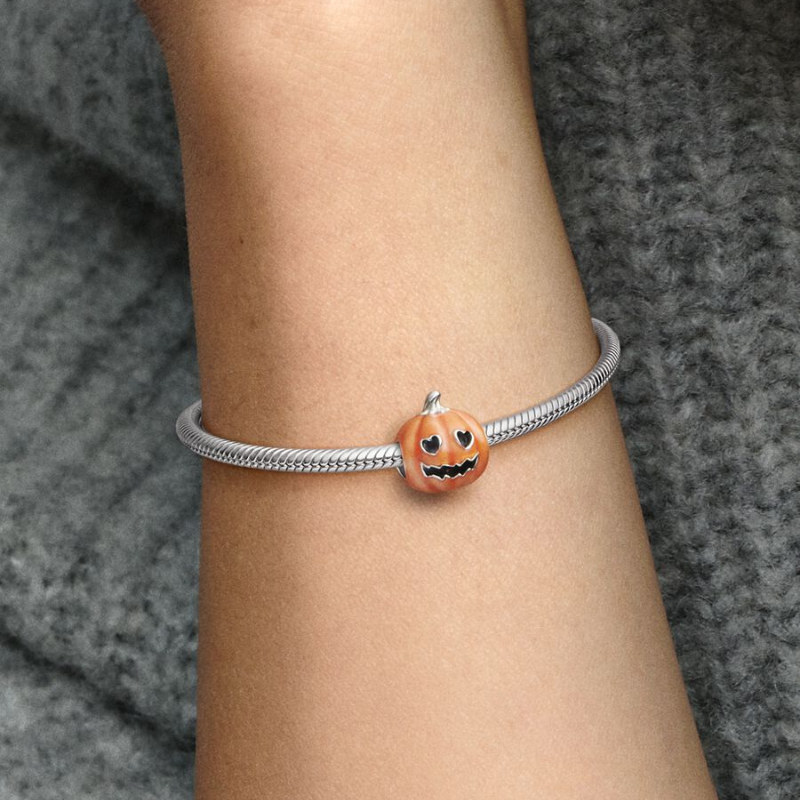 This delightful Glow-in-the-dark Spooky Pumpkin Charm in sterling silver is the perfect Halloween friend. Intricately detailed with a spooky face and heart-shaped eyes, this enamel-painted charm turns dark green when the lights go out - as if by magic. Get into the spirit of the scariest time of year by combining it with other holiday charms for a stylish Halloween look.