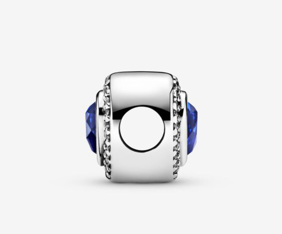 Express yourself in a shimmering blue light with this sterling silver heart charm. The inner heart-shaped blue crystal is framed by cubic zirconia.